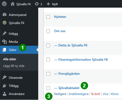 - Klicka på Spara (för att spara förändringarna på sidan)