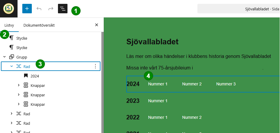- Här ska du troligen ta bort 1-2 ”Knappar” då detta året är nytt och alla nummer är troligen inte publicerade
